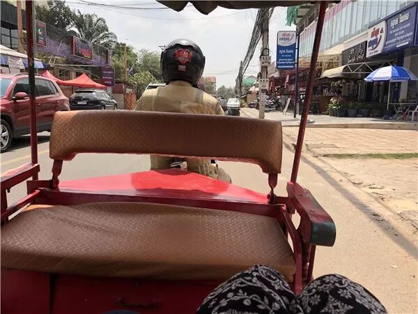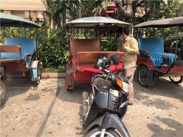 暹粒TUTU车是游人主要的出行工具,摩托车焊接着一个车厢,车厢可坐四人。