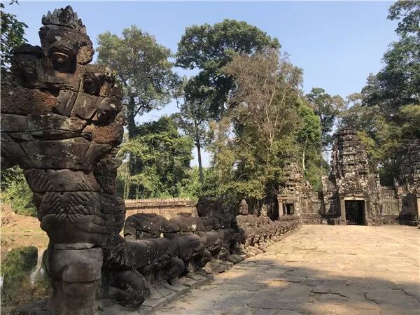 ▲图片摄于宝剑寺外护城河上,大吴哥城外坐车通过未留影。形态类似。