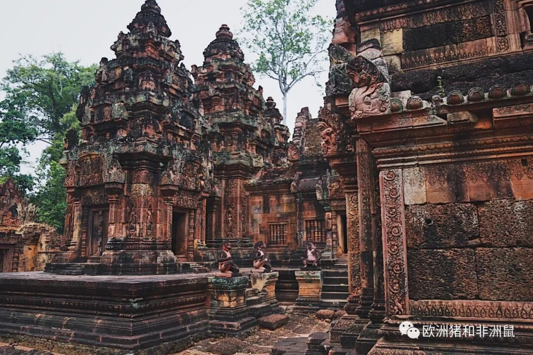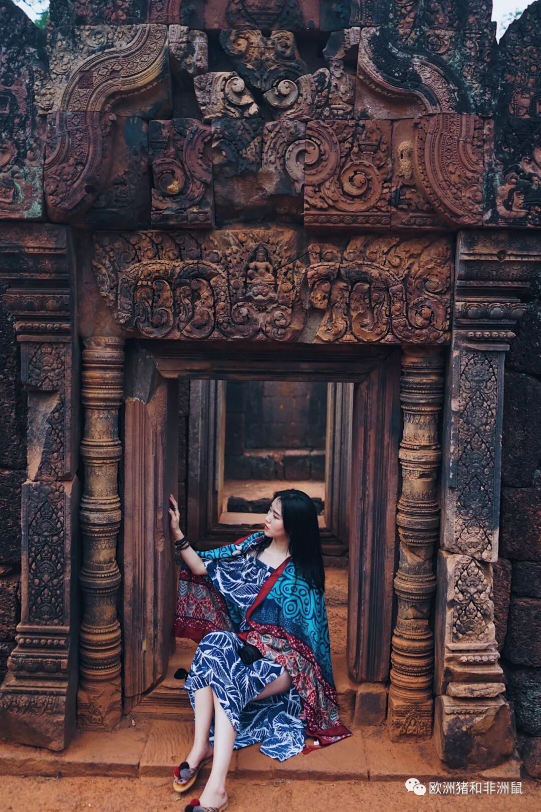 女王宫用的是荔枝山上的高棉红土 阳光下更加瑰丽 千年浮雕都在讲述着当时的故事
