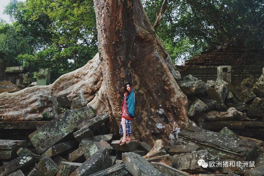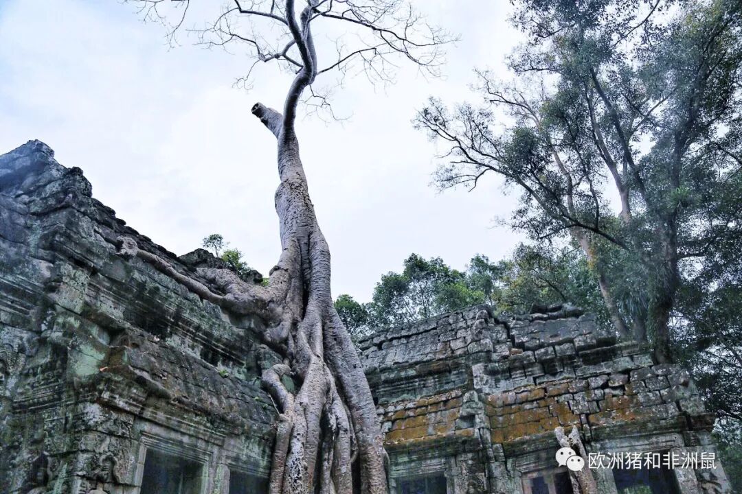 著名「古墓丽影」的拍摄?地之一 所以拖着拍了一天吴哥风的疲惫 我们还是决定去踩今天的最后一个景点 虽然已经有点走不动了 不过我跟小伙伴还是咬牙坚持 这个寺庙并不大 但也不是一眼看完的最好看的是那个参天古木和老墙的组合 好似这一幕就是在讲述这个地方爱恨缠绵的故事