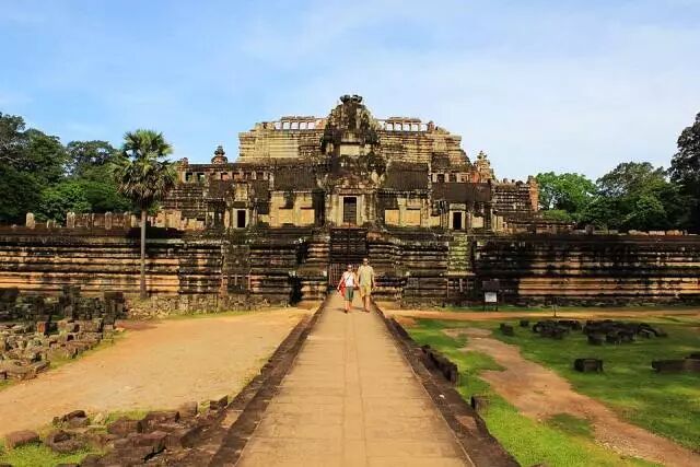 傍晚登【巴肯山】,此处乃是传说中观看吴哥日落最佳之场所,如气候条件允许,还可以看到日落奇景。登上高 60 公尺左右斜坡,就来到巴肯山顶,此处即可将整个吴哥窟尽收眼底。