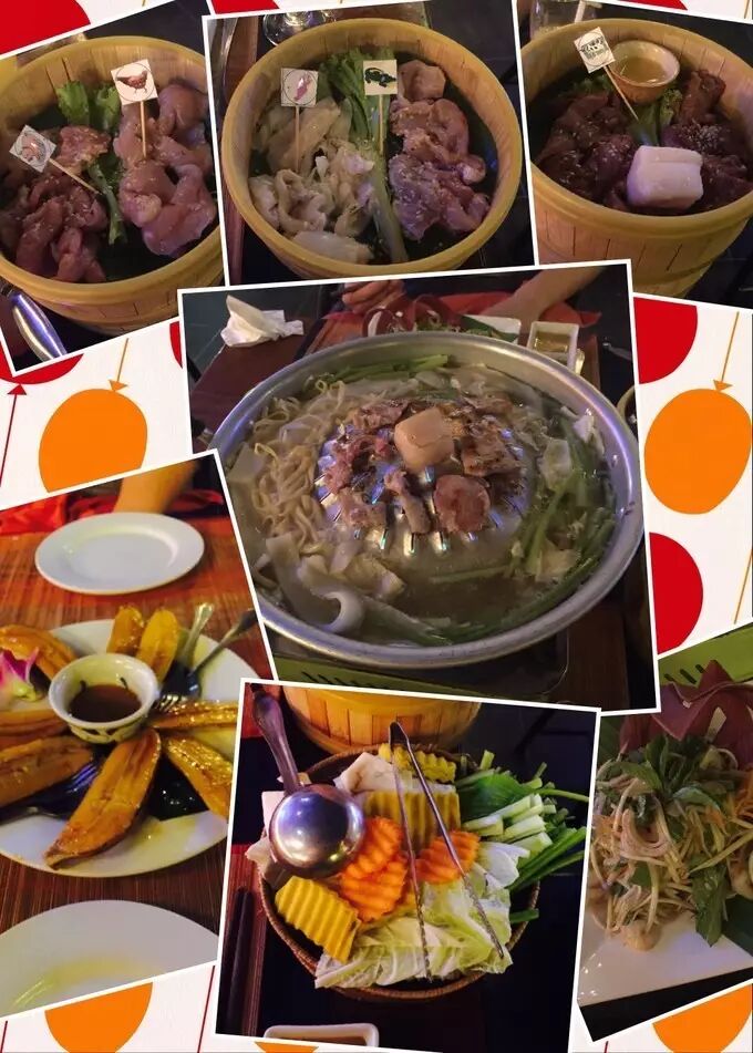 这个也是柬埔寨必体验,非常有特色,上边是烤肉两侧是火锅。一个套餐130左右,有鸡肉、牛肉、猪肉、鳄鱼肉,还有一些配菜。