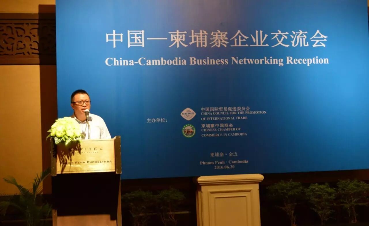 卢鹏起副会长在致辞中介绍了代表团此访的背景、目的,感谢柬埔寨中国商会对交流会的大力支持,阐述了柬埔寨市场在“一带一路”战略中的重要地位,并强调中国贸促会愿与柬埔寨中国商会共同推动中柬双边经贸关系发展。