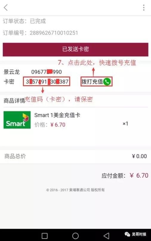 (小贴士:如果遇到点拨打充值无效的情况,请手动输入卡密充值。柬埔寨通也正在升级,新版本会更完善更人性化。)