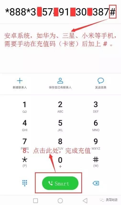 8.如果用的是安卓系统,要在卡密后加#号,不要忘记哦!