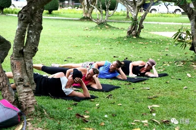一座姐妹庙香火正旺,香客们出出进进络绎不绝;街边一棵大树下一个亭子里供奉着一尊神像,过路的行人主动去烧香磕头;草坪一角,几个年轻人在踢毽球,他们的玩法和我们国家很相似。