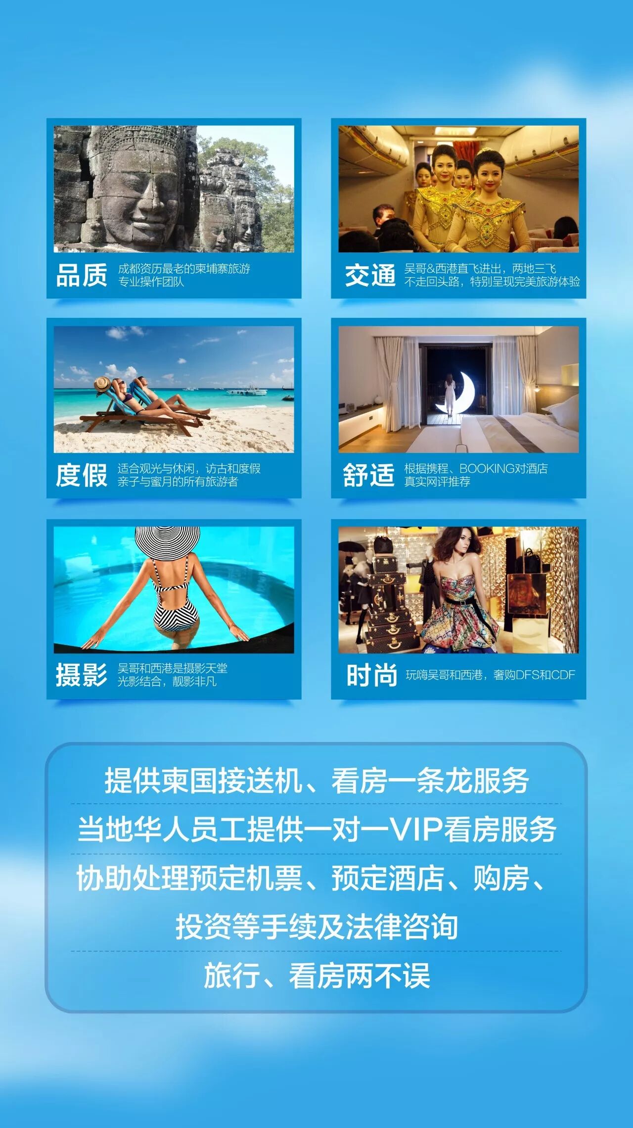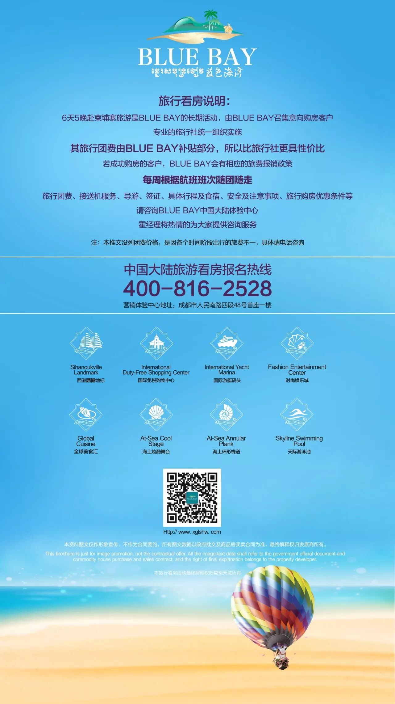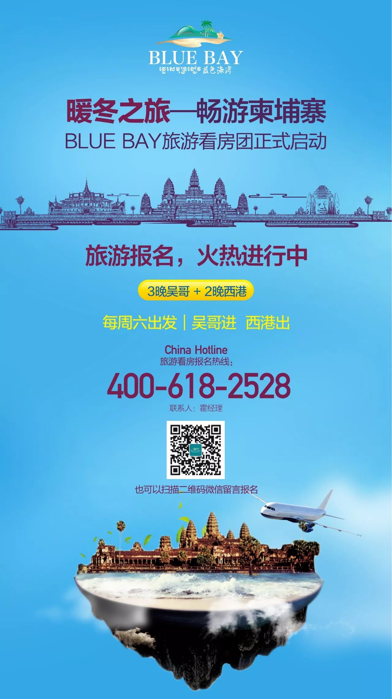 6天5晚赴柬埔寨旅游是BLUE BAY的长期活动,由BLUE BAY召集意向购房客户,由专业的旅行社统一组织实施,其旅行团费由BLUE BAY补贴部分,所以比旅行社更具性价比,若成功购房的客户,BLUE BAY会有相应的旅费报销政策,旅客可根据航班班次随团随走!