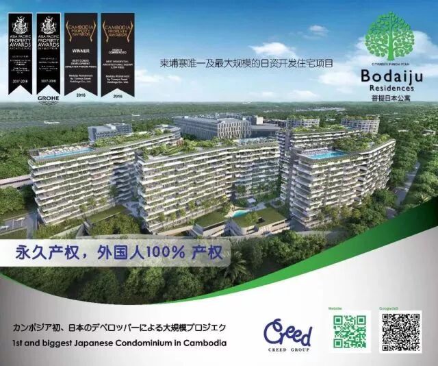 菩提公寓由在东南亚有无数投资成功经验的日本Creed 集团开发,首次进军金边经济特区打造最具投资新亮点与居住品质并重的标准,同时获得柬埔寨总理洪森公开推荐,也是当地最受欢迎的楼盘。