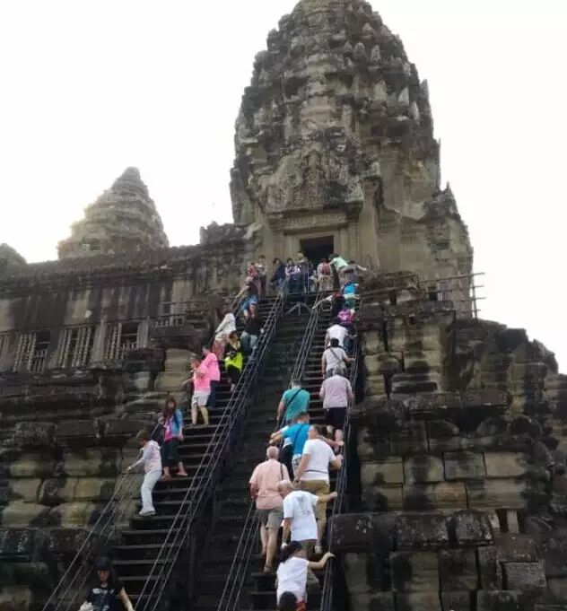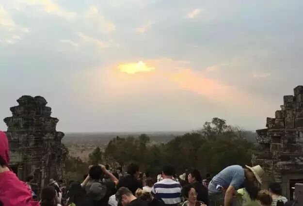 下午4点30分,我们驶向了今天的最后一个重头戏:巴肯山日落。巴肯山是观看吴哥日落最佳之场所,如气候条件允许,还可以看到日落奇景。登上高60公尺左右斜坡,就来到巴肯山顶,此处即可将整个吴哥窟尽收眼底。