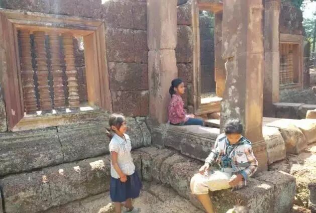 艳阳下的女皇宫处处残缺。但她阳光下的鲜艳红色,同每一块石、柱、廊沿、门楣、窗框、壁弄,以及诉说故事的每一处雕刻,到处散发出古高棉浮雕艺术的绝美气息。