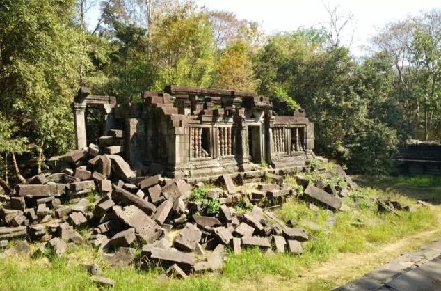 崩密列里面就只有一条独木桥似的道路,周围几乎都是大树和废墟,大部分阳光都被树叶挡住,有的废墟堆上已布满青苔。
