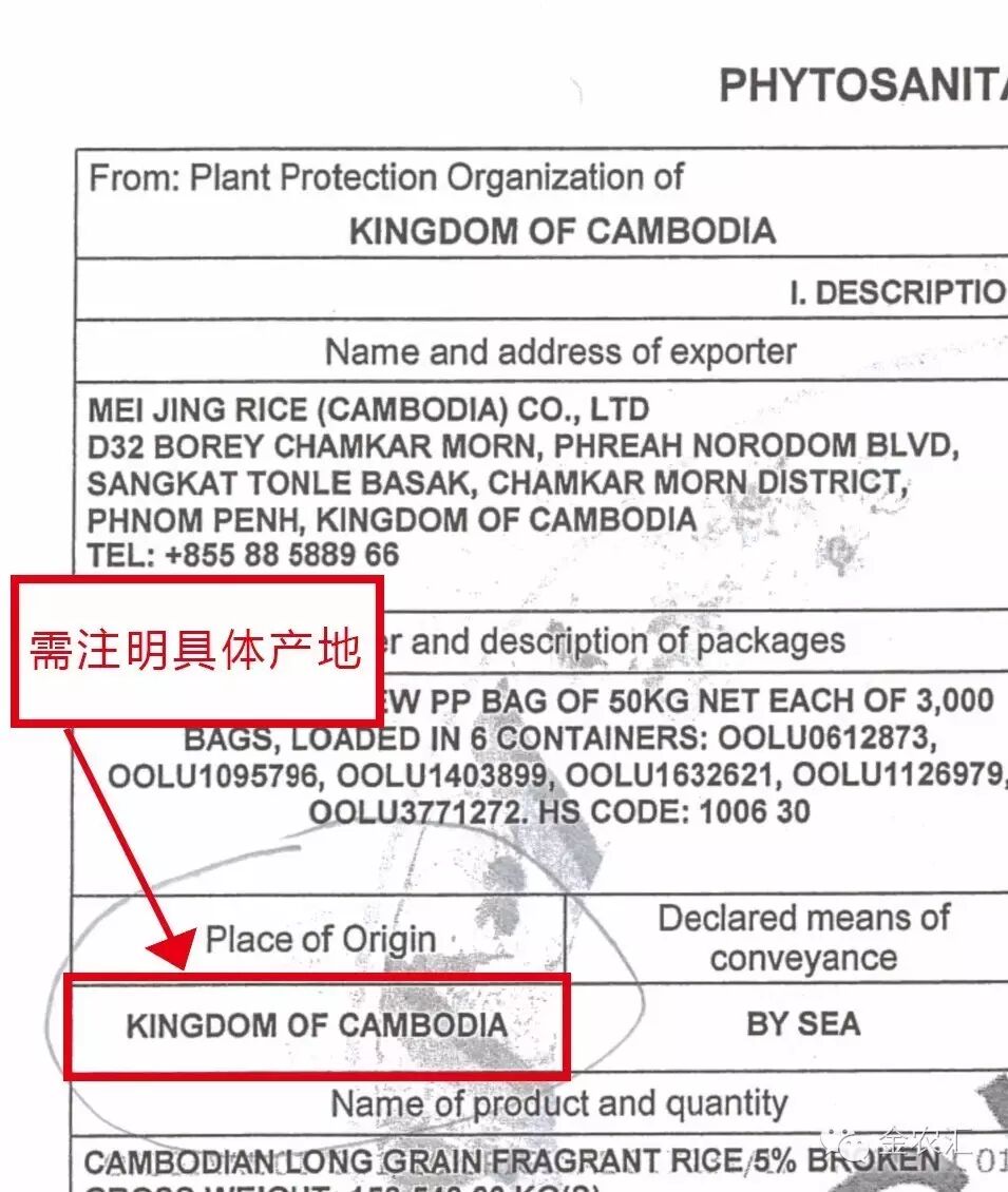 近日,现商检局对柬埔寨输华大米的证书有了新规定: