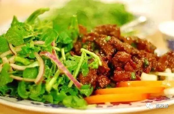 炒好的牛肉配以柬埔寨特有的烤肉酱,配有白饭和炒蛋。是不是超有食欲呢~