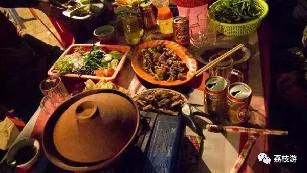 柬式火锅又称为CambodiaBBQ。类似我们的小火锅。烧炭的锅同时可以做火锅和烧烤,上面烤肉时,肉的汤汁会留到锅里,非常有意思。