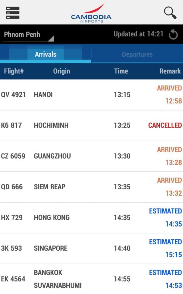 一个关于柬埔寨机场起飞降落到达的软件。只要打开这个APP就能随时查看到目前柬埔寨各个机场的飞机起落情况。要是去机场接送机,这简直就是神器。因为只要搜索你自己或朋友的航班,就能第一时间看到飞机的情况,已经降落或者延迟都会出现在界面上。商旅人士,赶紧去下载吧!